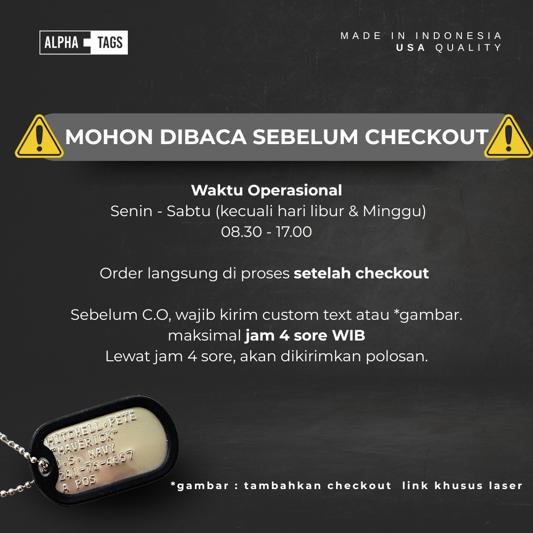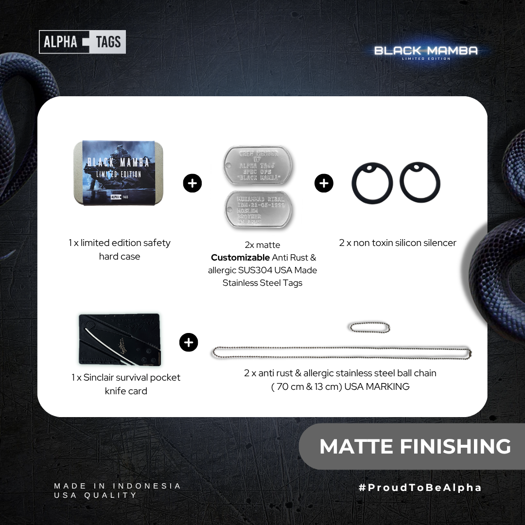 ![[AT] New Product E-Commerce (9) Black Mamba Dog Tag Set bisa custom embossed dan laser](https://alphatags.id/wp-content/uploads/2024/02/AT-New-Product-E-Commerce-9.png)